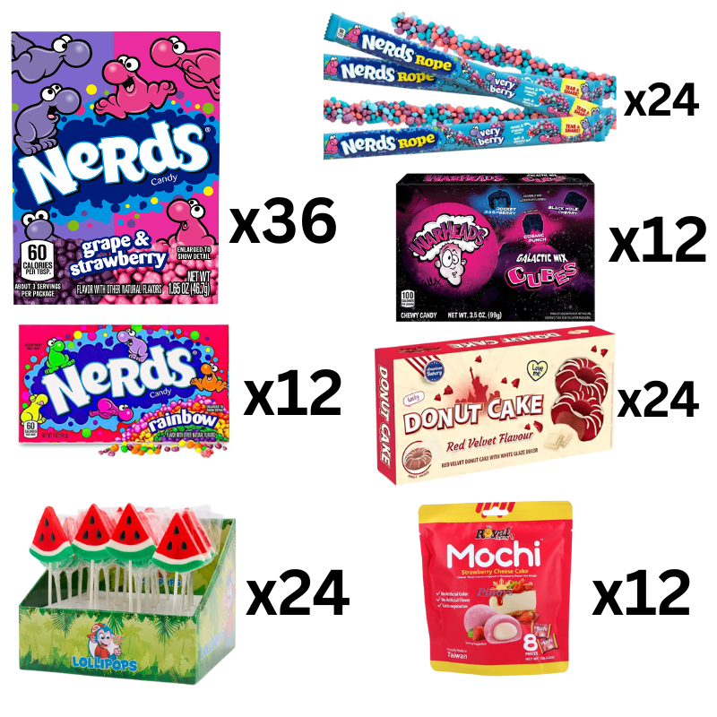 Mini acadele Felko Pepene, 17g x 24Bomboane Nerds cu aroma de struguri si capsuni 46,7gr. x 36